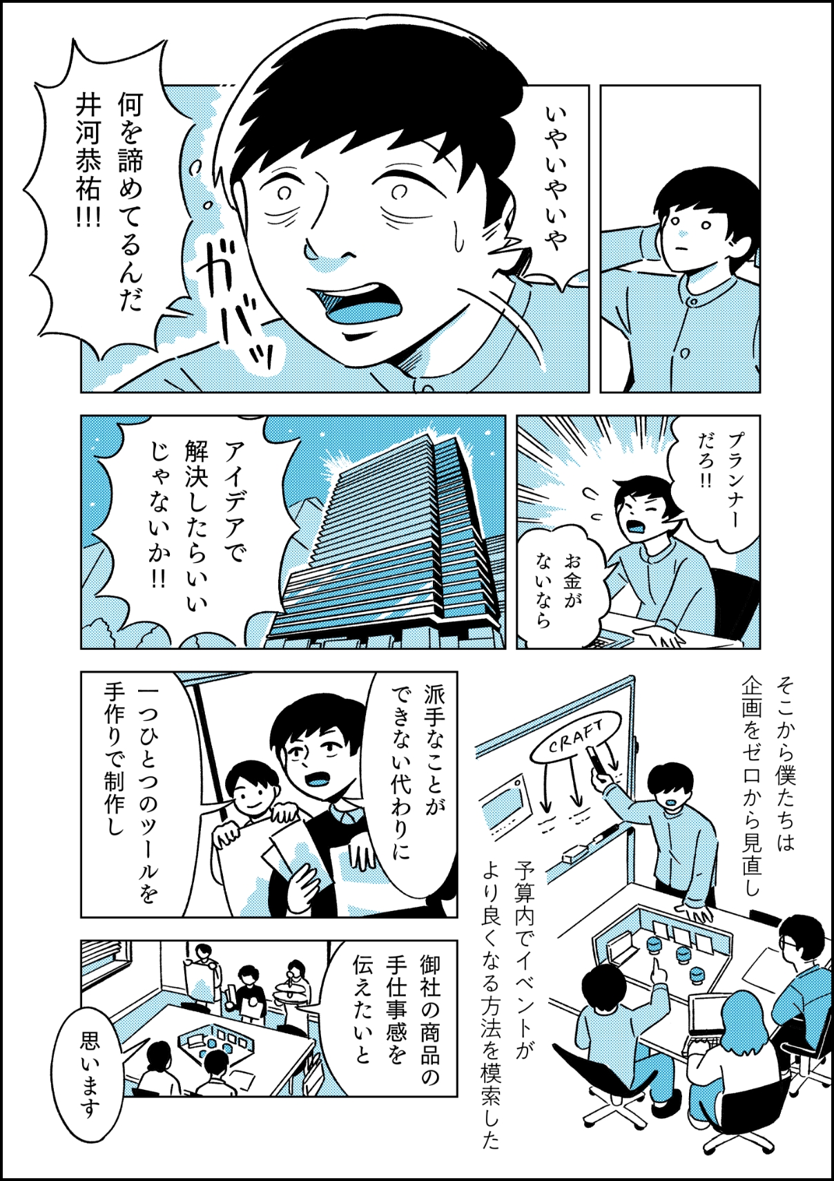 厳しい予算条件の中で、イベント企画を再設計し、実施まで完遂できたことです。進行途中で大幅な予算の圧縮が必要になり、社内の営業とスタッフで協力しながら企画をゼロから見直し、修正案を練り直しました。「もう少しお金があったら…」という言い訳を抑え込み、今できる最適解を必死に探した結果、当日は多くの来場者で賑わうイベントとなり、確かな手応えを得ました。プランナーになりたての頃は、理想ばかり追って実現性の低い提案になりがちでしたが、限られた予算の中で最大の成果を生み出せてこそプロだと、この経験を通じて強く実感しました。「取捨選択」と「最適解」の両方を徹底的に突き詰めてやり切ったこの経験は、今の自分の大きな自信と成長につながっています。