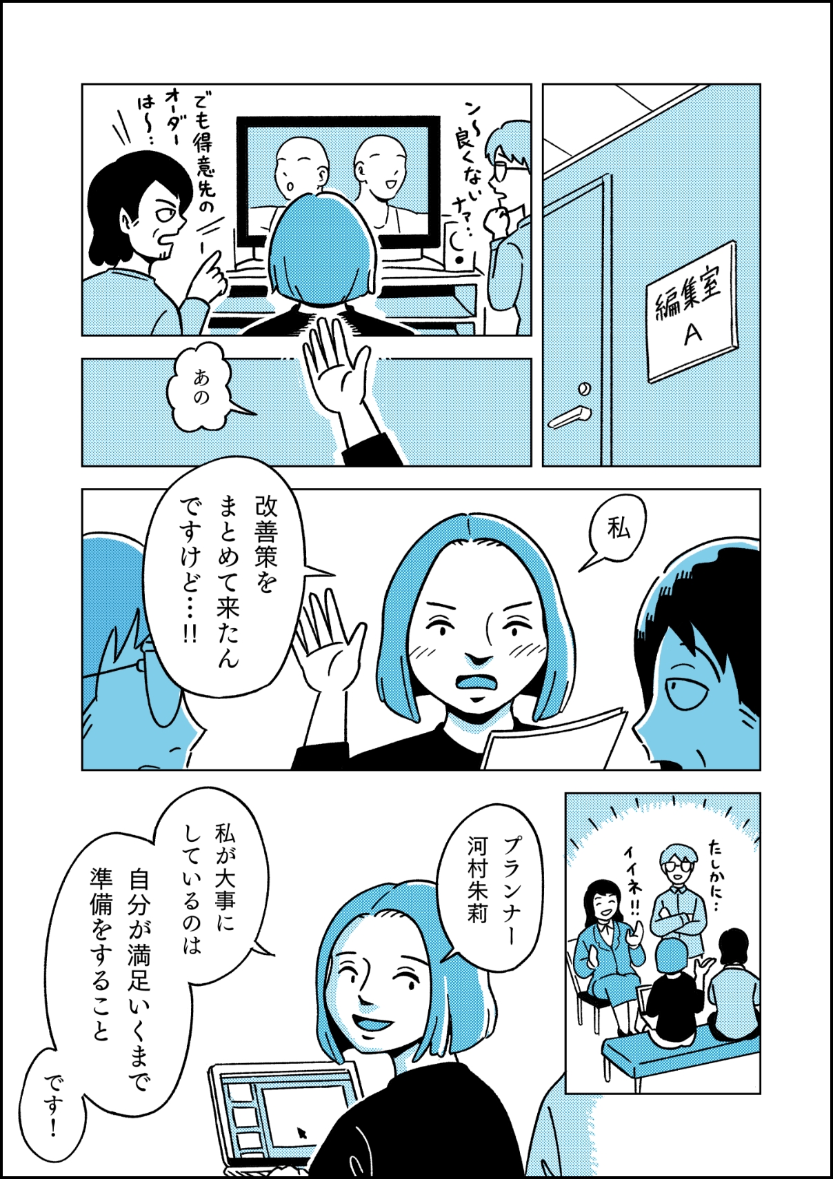 「ご機嫌でいること」です。念願のプランナーになれたからこそ、異動できた頃のうれしかった気持ちをずっと忘れたくないと思っていて。だからこそ、どんなに大変でも「自分がやりたかったことだろ!」と喝を入れて、なるべくご機嫌で働けるように心がけています。おかげさまで、「河村はどんな大変な時でも笑顔だよね~」と言ってもらえることもあって、ちょっとアホみたいですが嬉しいです(笑)不機嫌になってしまった時は、そのあとすごく反省します。