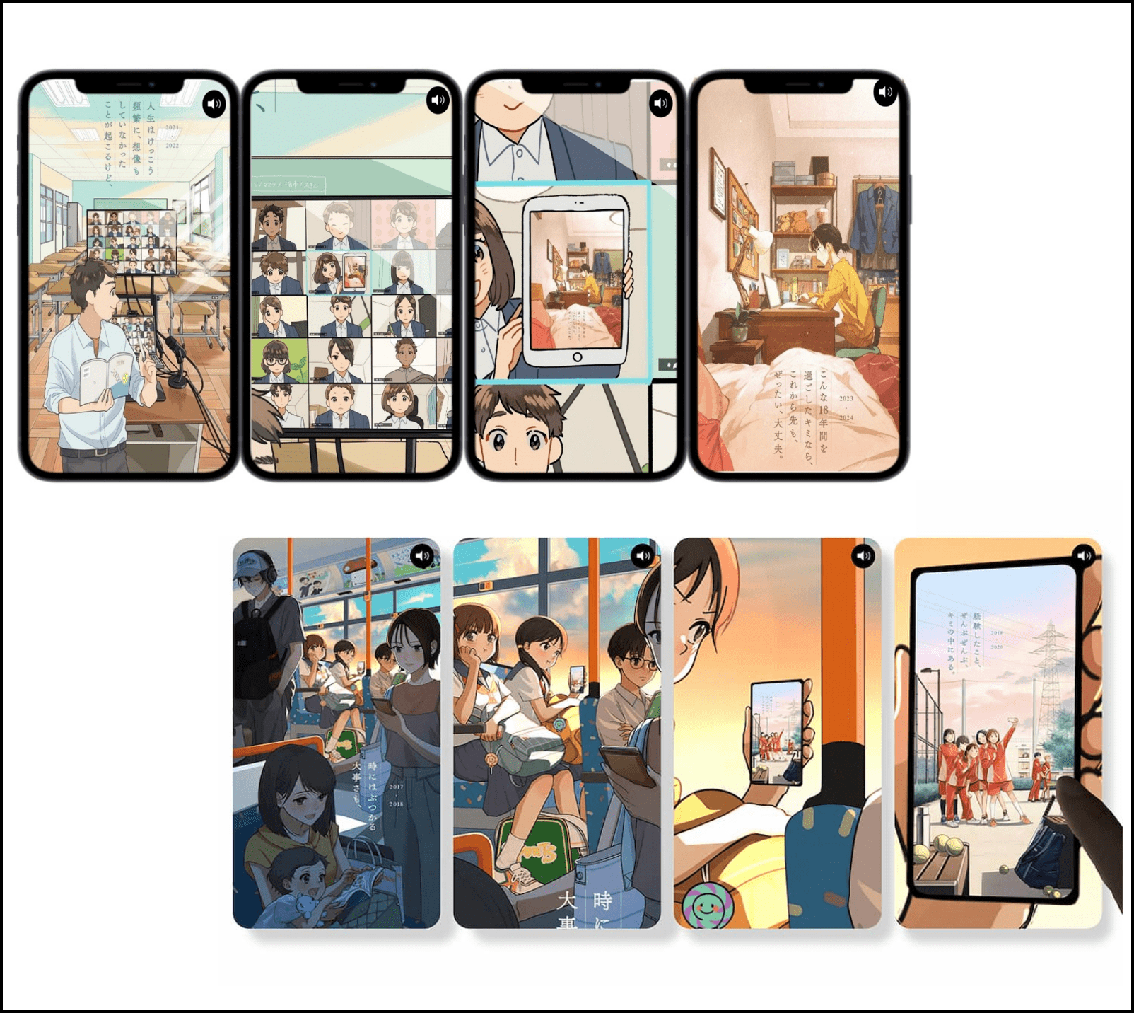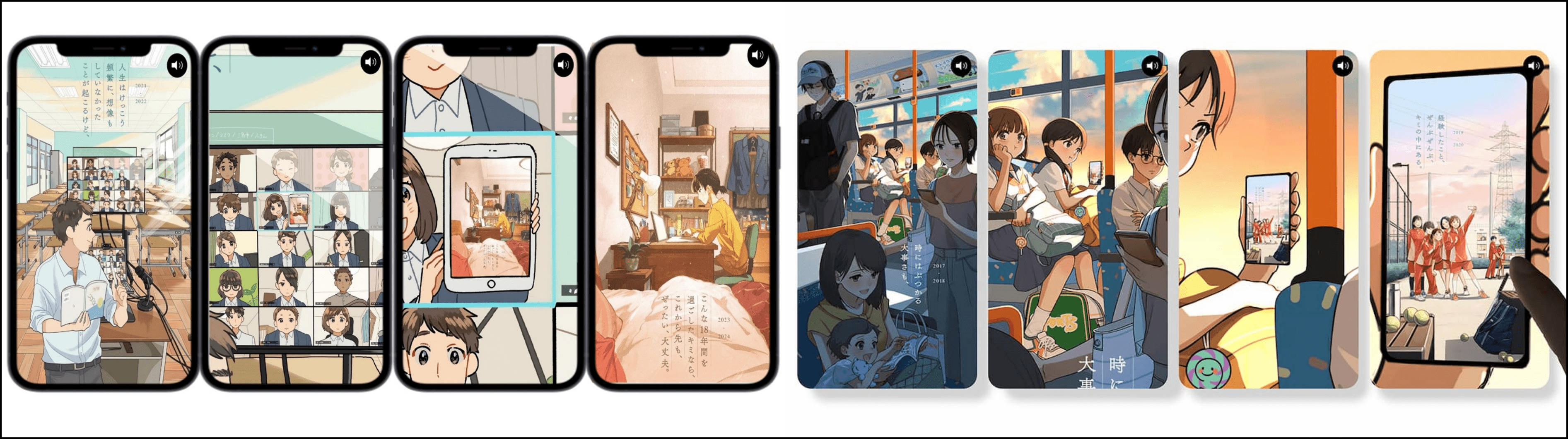 「無限アート」はSNSを中心に新しいアート手法として話題になりつつあるが、あくまでも動画で閲覧・シェアされることが一般的。しかし今回は、ウェブサイト上で画面スクロールを行うことで無限アートの中へ入り込めるような仕組みを実装し、視聴者自身で体験できるようにした。イラストレーター10名の方にご協力いただき、18年間の人生を様々なタッチで表現。より没入感のあるコンテンツに仕上げた。